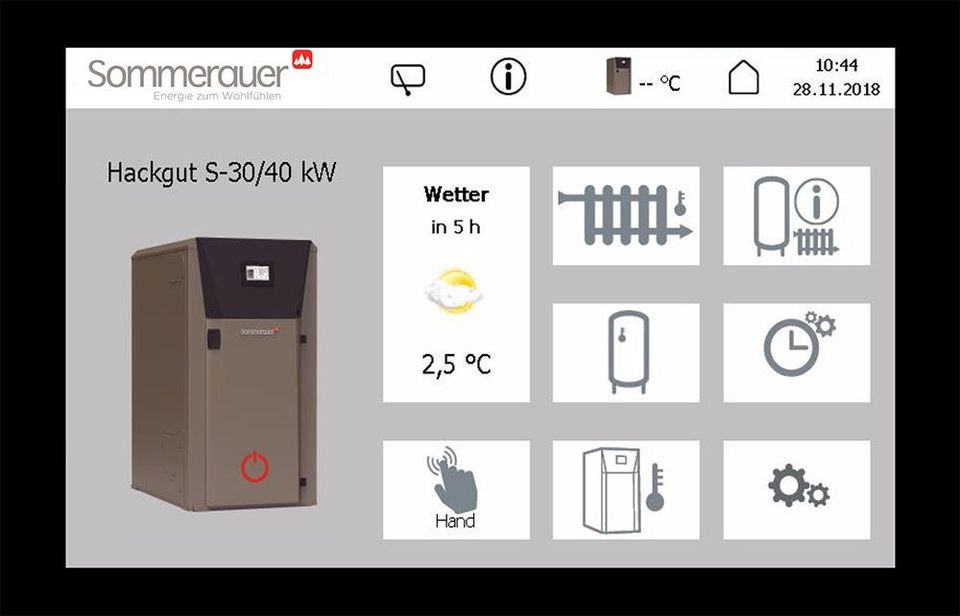 Mit einer eigenentwickelten, weltweit innovativen Steuerungstechnologie ist die Firma Sommerauer in der Lage, dass sich die Hackgutanlagen und Pellet-Heizanlagen von 8 kW bis 250 kW vorausschauend auf die aktuellen Wetterdaten einstellen.